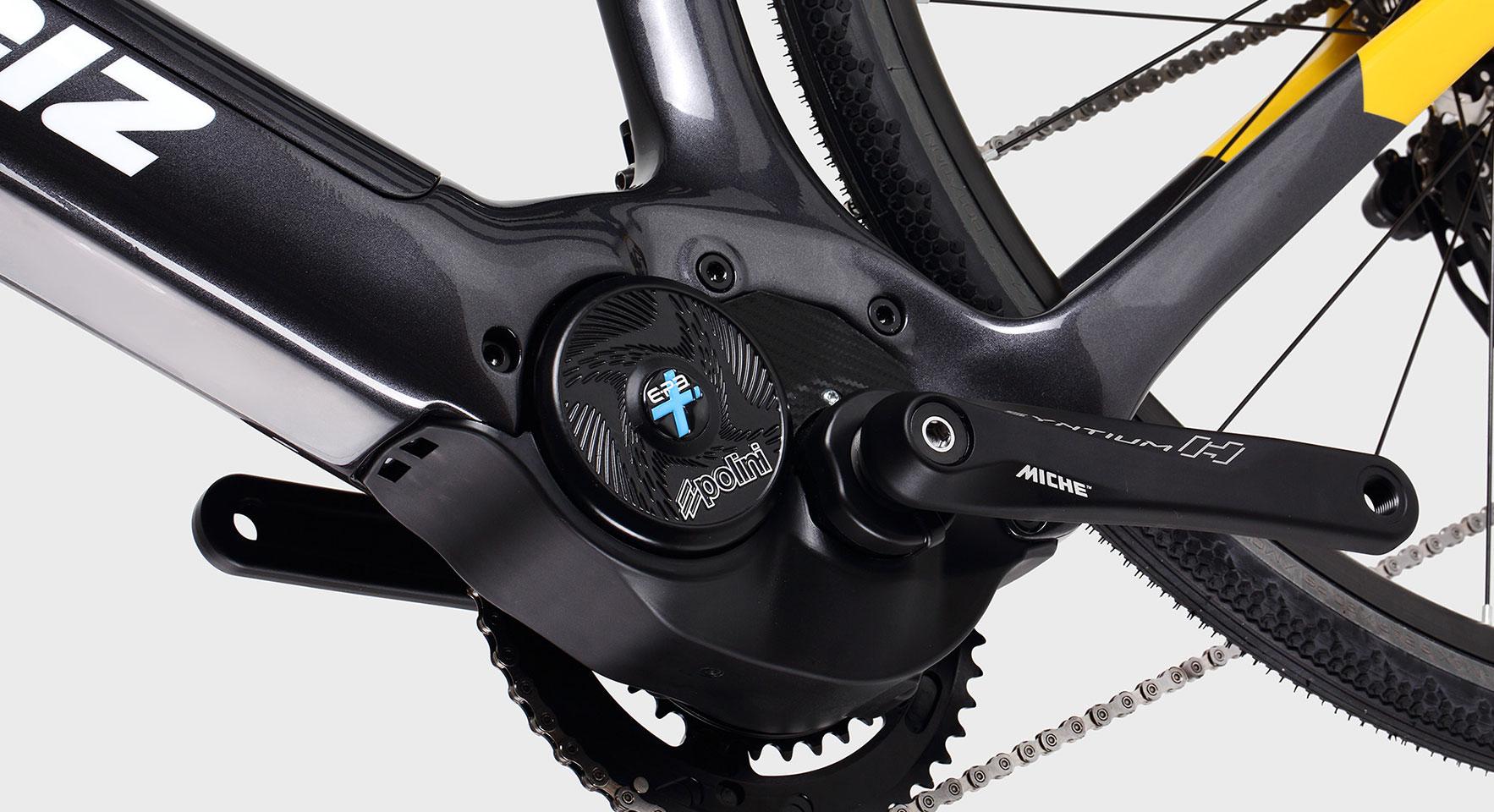 The Polini motor delivers 250 W of power, with peaks of 500 W and a maximum torque of 75 Nm. The battery that powers it has a capacity of 500 Wh.